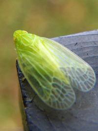 体長1cm弱、植物の種のような形態。うすい緑白色の翅が綺麗。