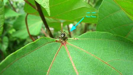 アカメガシワの蜜を集めるハチ