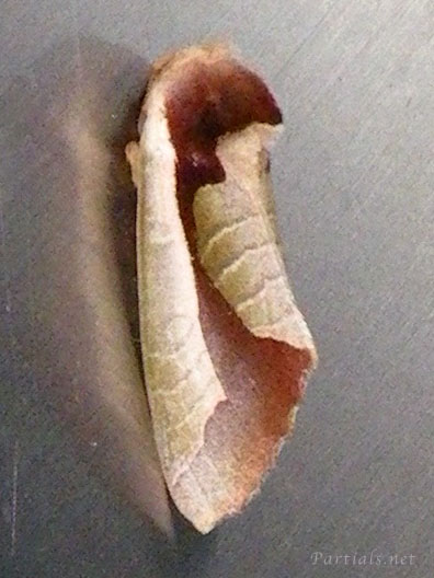最初見たときは枯葉と思って軽くスルーしかけ、ハ!と思いついて「もしや」とよくよく見たら、ああ、、、凄い。これは期待以上。じかに眺めても、やっぱりへこんでるようにしか見えない。