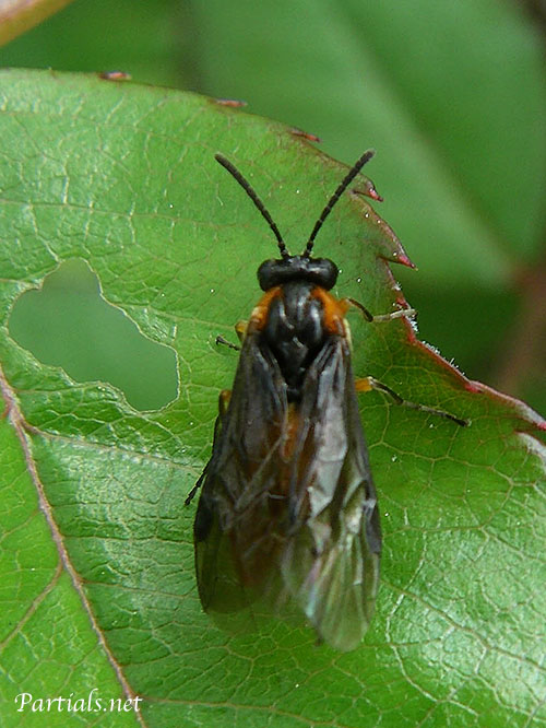 成虫はバラの若い茎に卵を産みつけ、幼虫はバラの葉を食べる